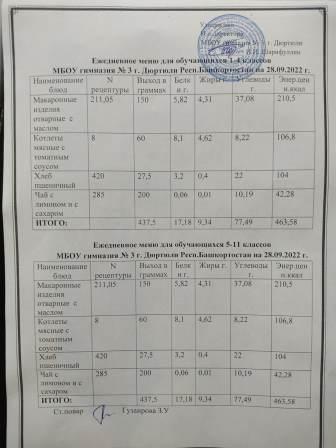 Меню на 28.09.2022 для 1-4 и 5-11 кл