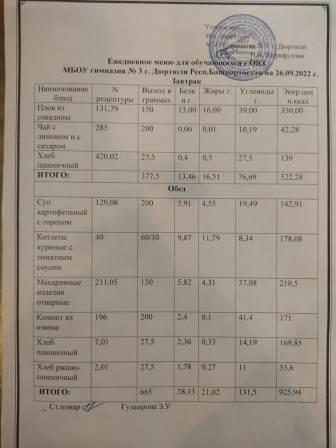 Меню на 26.09.2022 для 1-4 и 5-11 кл