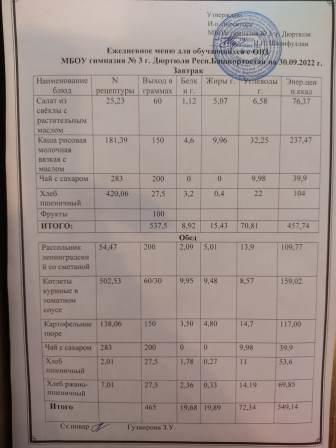 Меню на 3.10.2022 для 1-4 и 5-11 кл