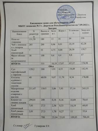 Меню на 07.09.2022 для ОВЗ