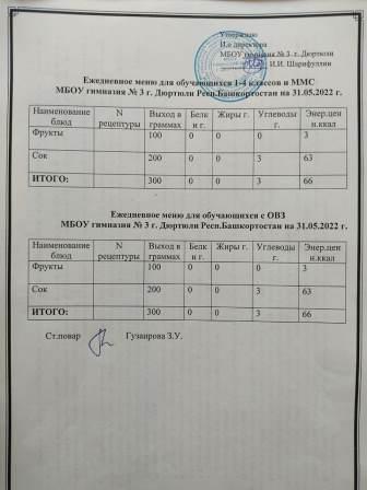 Меню на 31.05.2022 для 1-4 кл