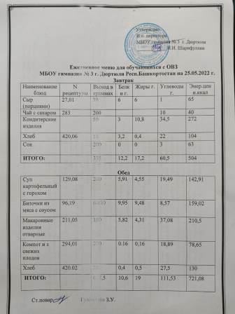 Меню на 25.05.2022 для ОВЗ