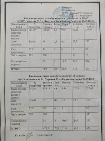 Меню на 26.05.2022 для 1-4 и 5-11 кл