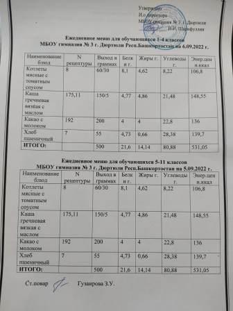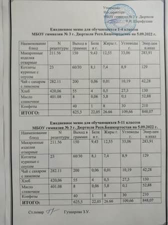 Меню на 06.09.2022 для 1-4 и 5-11 кл
