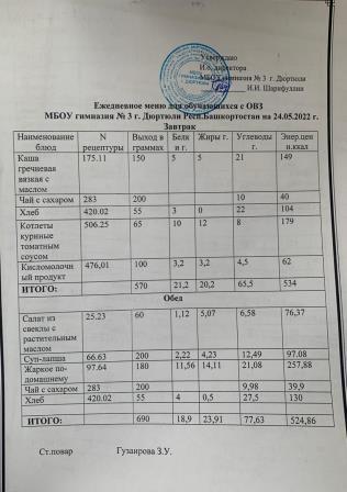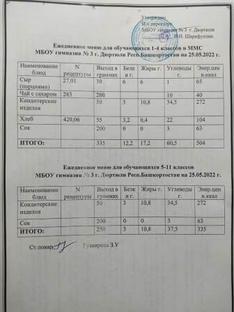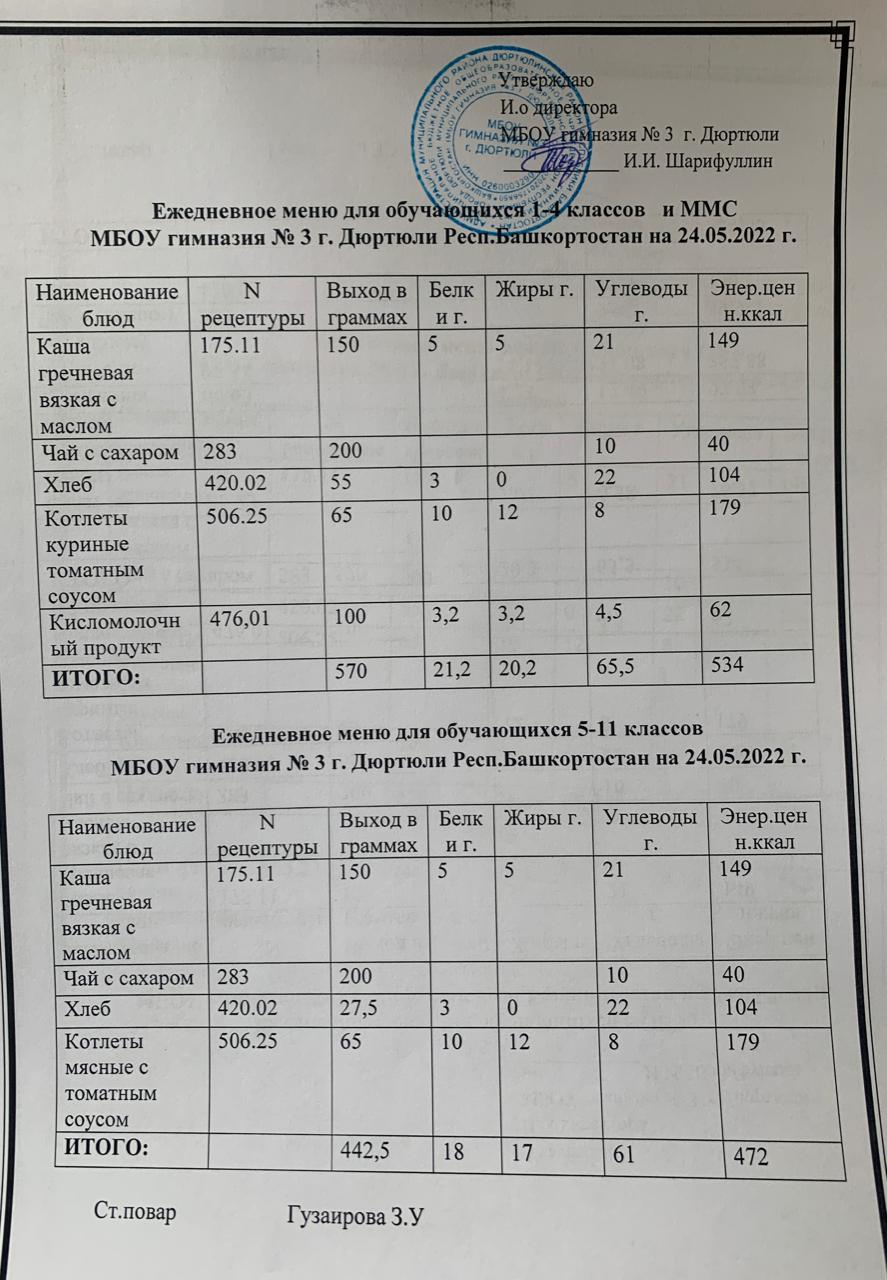 Меню на 24.05.2022 для 1-4 и 5-11 кл