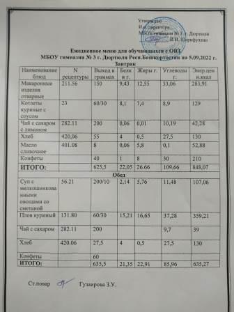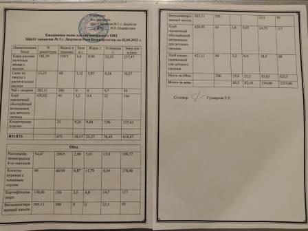 Меню на 05.09.2022 для ОВЗ