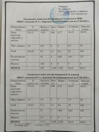 Меню на 27.05.2022 для 1-4 и 5-11 кл