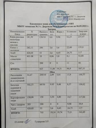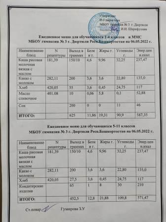 Меню на 06.05.2022 для 1-4 и 5-11 кл