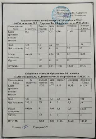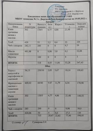 Меню на 19.05.2022 для 1-4 и 5-11 кл