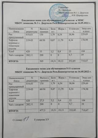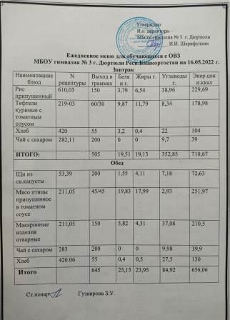 Меню на 16.05.2022 для 1-4 и 5-11 кл