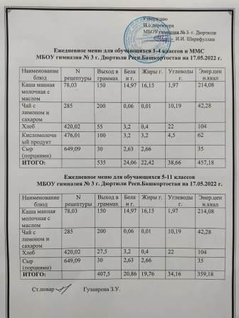 Меню на 17.05.2022 для 1-4 и 5-11 кл