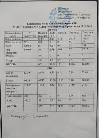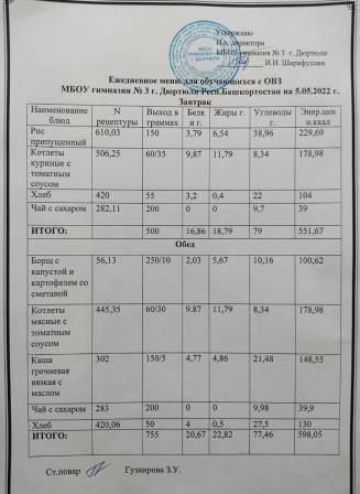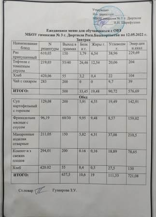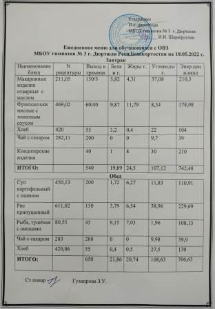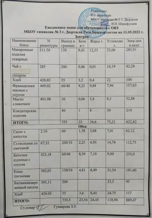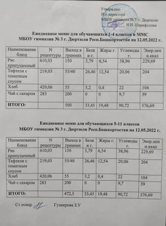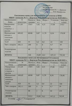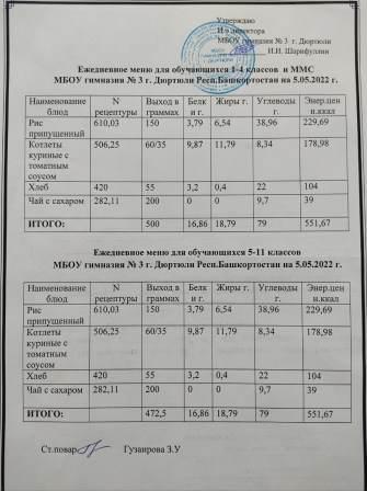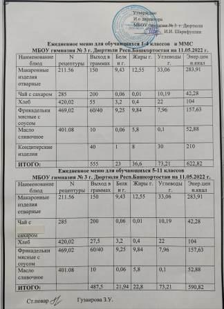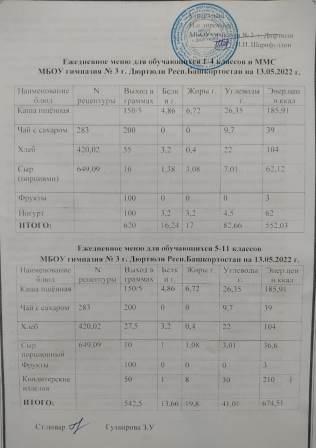 Меню на 12.05.2022 для 1-4 и 5-11 кл