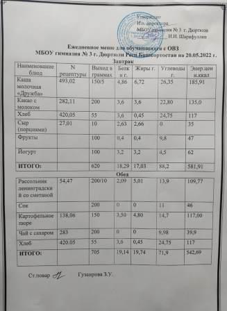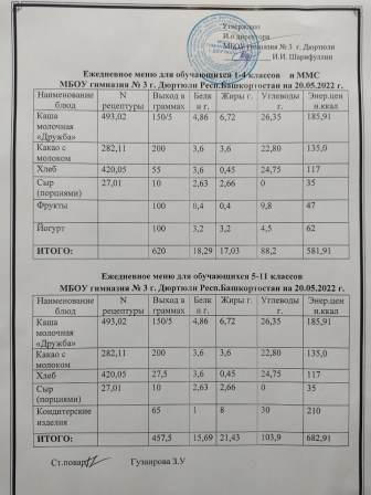 Меню на 20.05.2022 для 1-4 и 5-11 кл