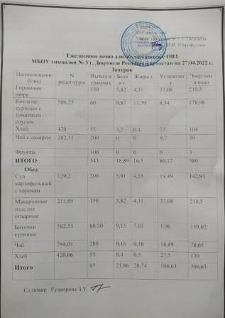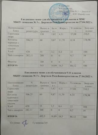 Меню на 27.04.2022 для 1-4 и 5-11 кл