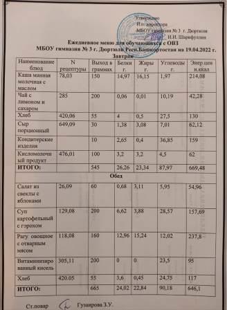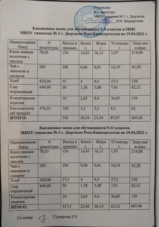 Меню на 19.04.2022 для 1-4 и 5-11 кл