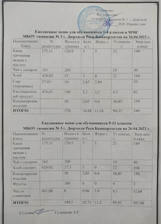Меню на 26.04.2022 для 1-4 и 5-11 кл