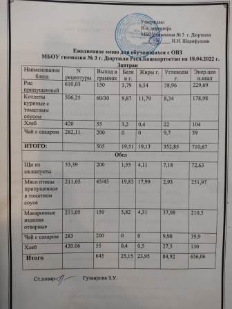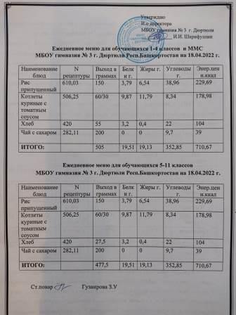 Меню на 18.04.2022 для 1-4 и 5-11 кл