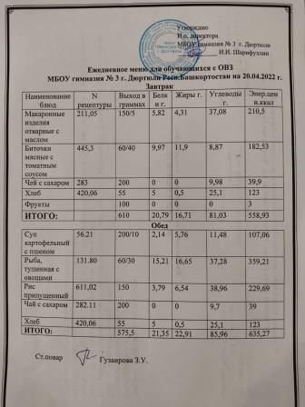 Меню на 20.04.2022 для 1-4 и 5-11 кл