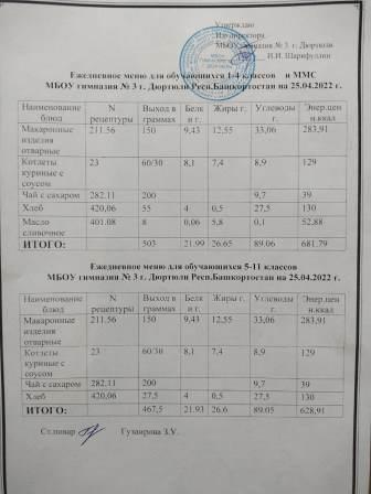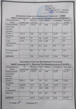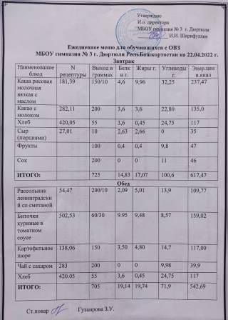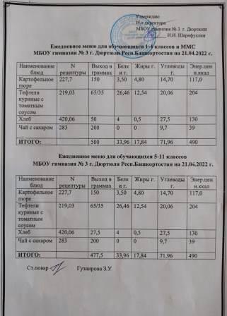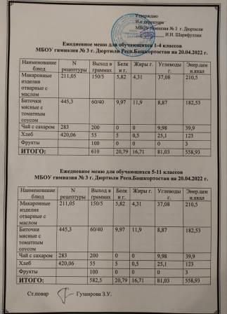 Меню на 22.04.2022 для 1-4 и 5-11 кл