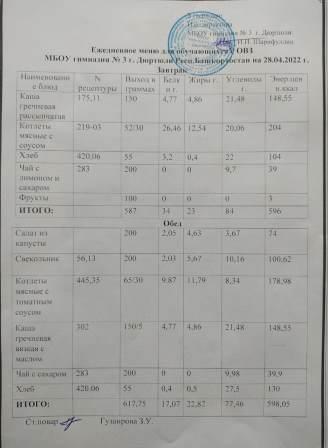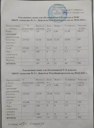 Меню на 28.04.2022 для 1-4 и 5-11 кл