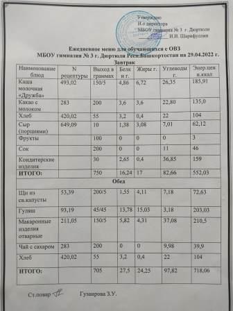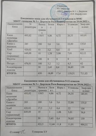 Меню на 29.04.2022 для 1-4 и 5-11 кл