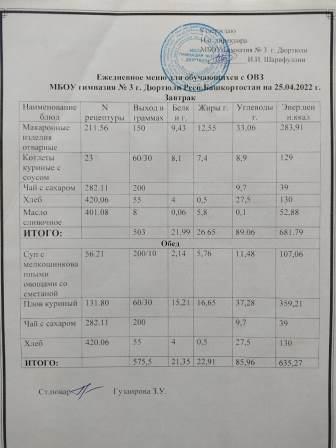 Меню на 25.04.2022 для 1-4 и 5-11 кл