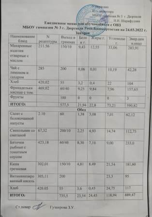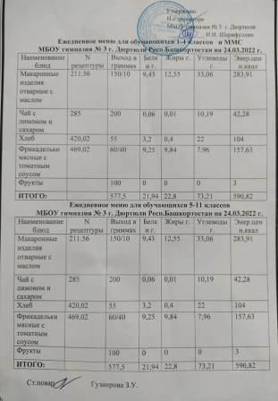 Меню на 24.03.2022 для 1-4 и 5-11 кл