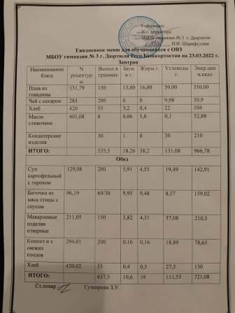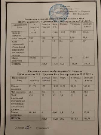 Меню на 23.03.2022 для 1-4 и 5-11 кл