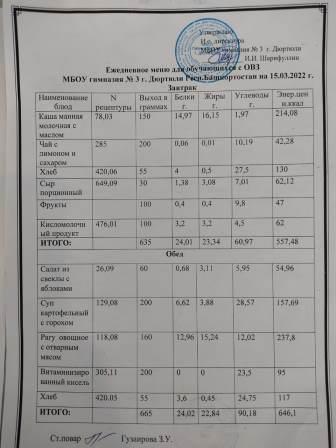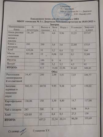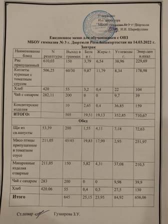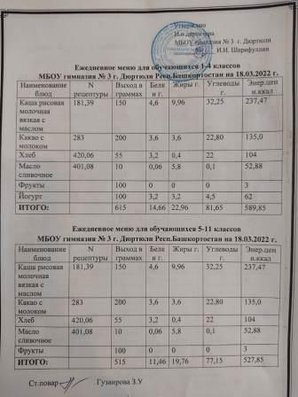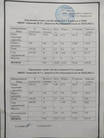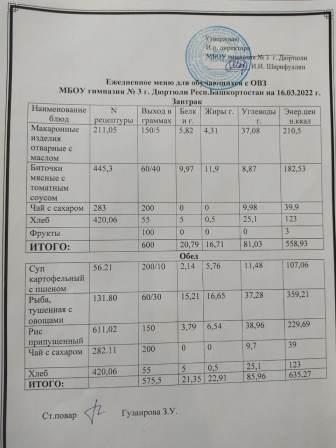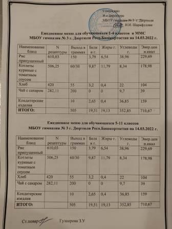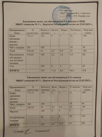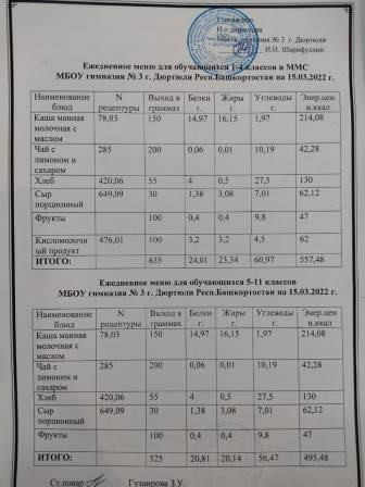 Меню на 15.03.2022 для 1-4 и 5-11 кл
