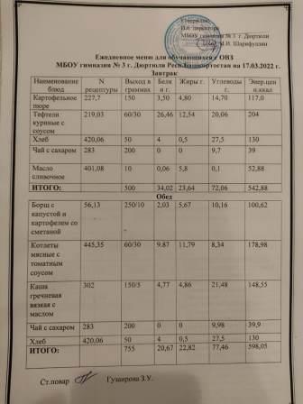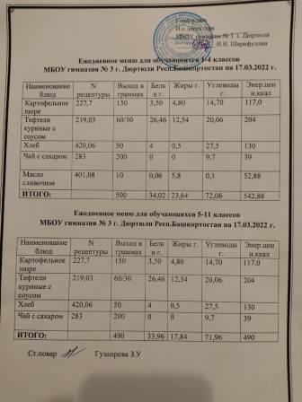Меню на 17.03.2022 для 1-4 и 5-11 кл