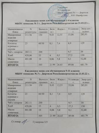 Меню на 21.03.2022 для 1-4 и 5-11 кл