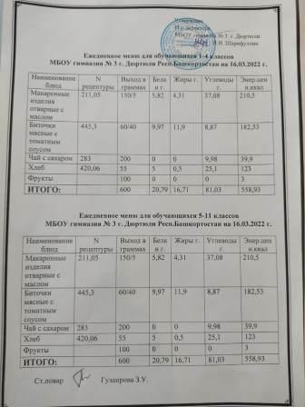 Меню на 16.03.2022 для 1-4 и 5-11 классов