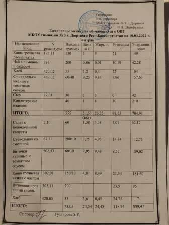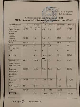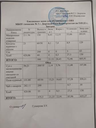 Меню на 03.03.2022 для ОВЗ