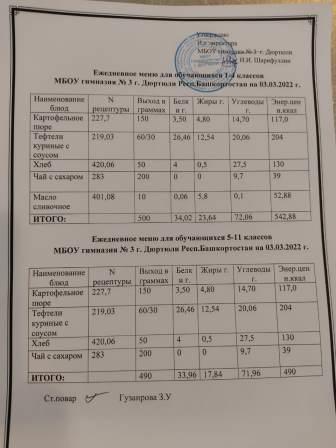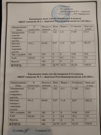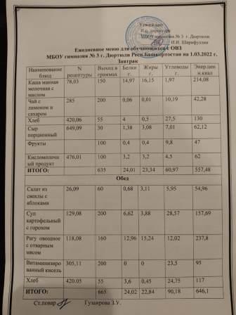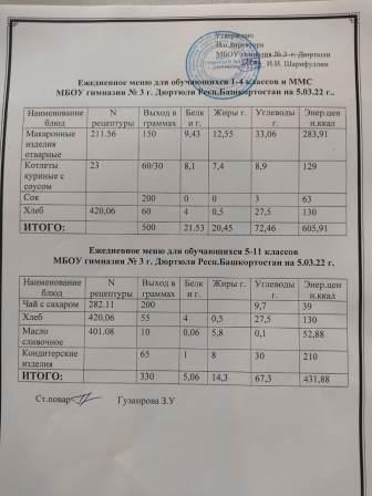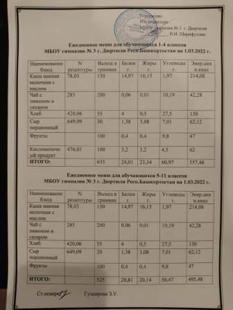 Меню на 03.03.2022 для 1-4 и 5-11 кл