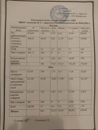 Меню на 28.02.2022 для ОВЗ