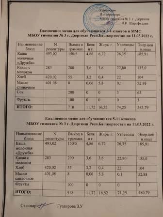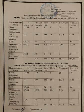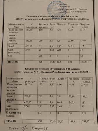 Меню на 10.03.2022 для 1-4 и 5-11 кл