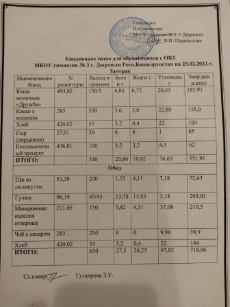 Меню на 25.02.2022 для ОВЗ