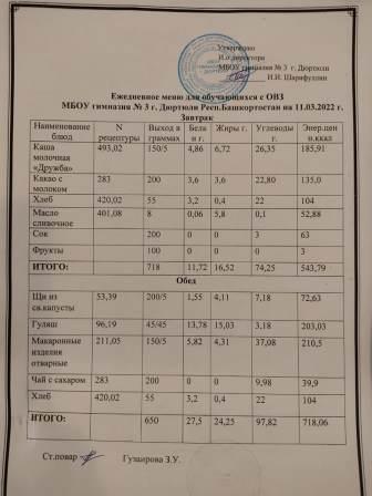 Меню на 11.03.2022 для ОВЗ