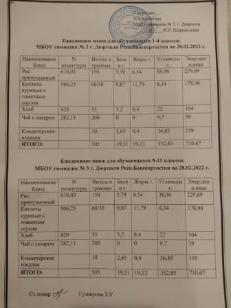 Меню на 02.03.2022 для 1-4 и 5-11 кл