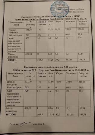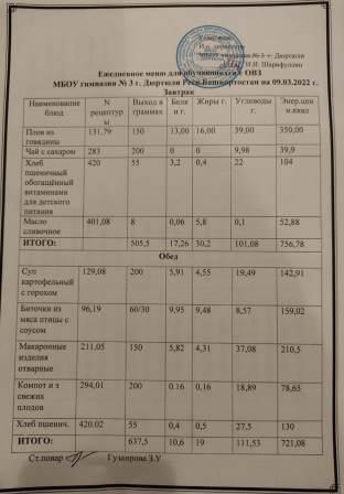 Меню на 09.03.2022 для 1-4 и 5-11 кл
