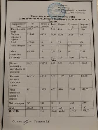 Меню на 01.03.2022 для ОВЗ