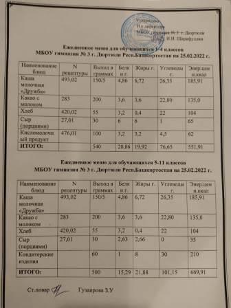 Меню на 25.02.2022 для 1-4 и 5-11 кл