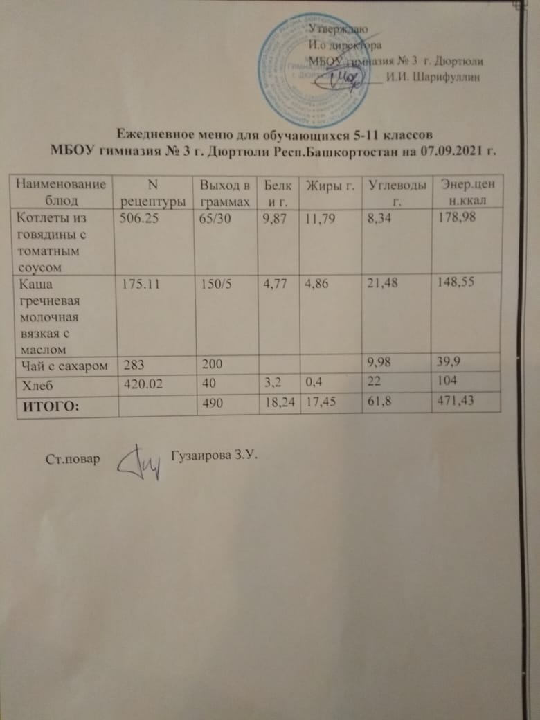 Меню на 08.09.2021 для 5-11 кл