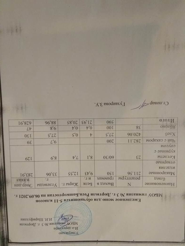 Меню на 13.09.2021 для 1-4 и 5-11 кл