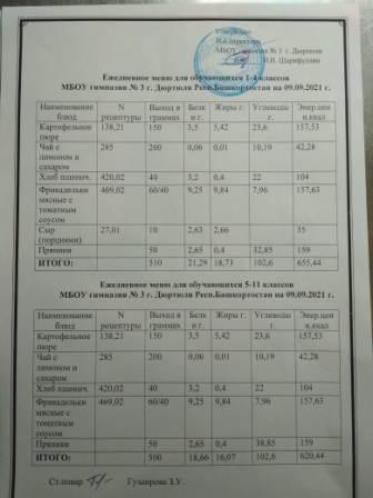 Меню на 09.09.2021 для 1-4 и 5-11 кл