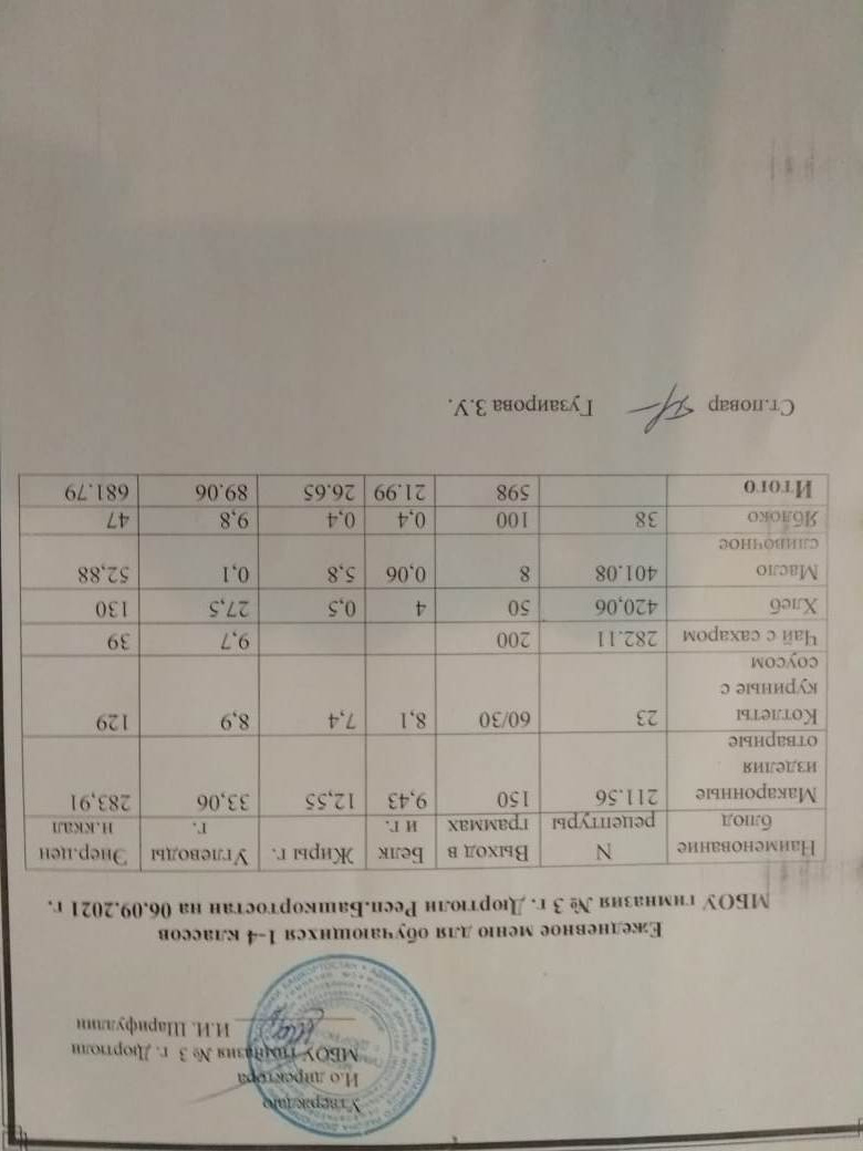 Меню на 06.09.2021 для 1-4