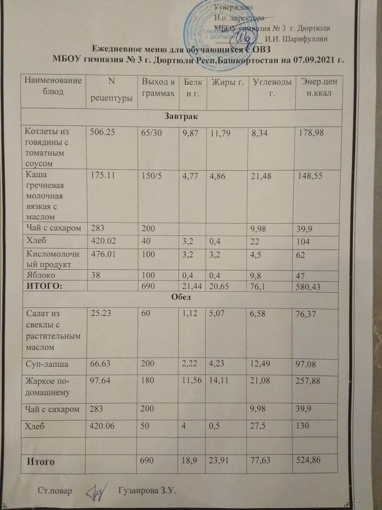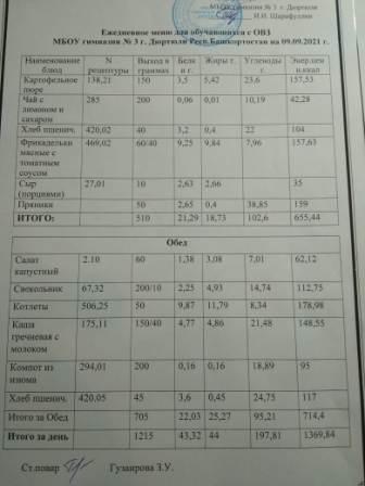 Меню на 07.09.2021 для ОВЗ