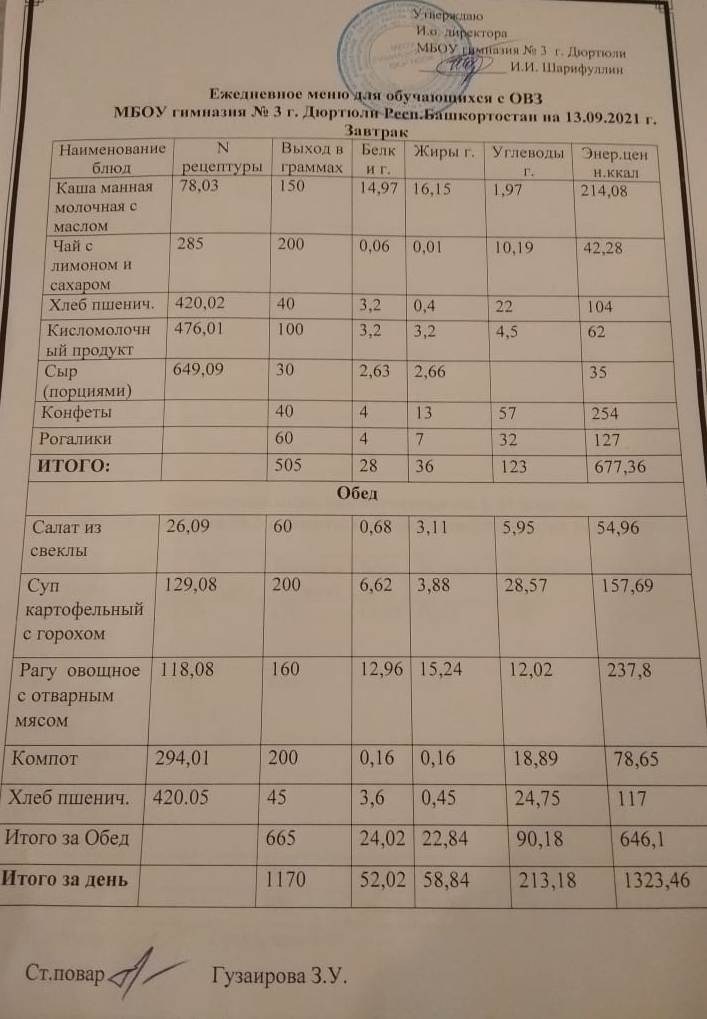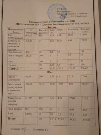Меню на 13.09.2021 для ОВЗ