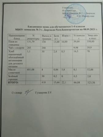 Меню на 08.09.2021 для 1-4 кл